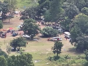 ความคืบหน้าสถานการณ์ชายแดนไทย-กัมพูชา ที่ บ้านหนองจาน-หนองหญ้าแก้ว อ.โคกสูง จ.สระแก้ว เมื่อช่วงเที่ยงที่ผ่านมาวันที่ 10 ตุลาคม 2568 เจ้าหน้าที่ กองกำลังบูรพา ใช้โดรนบินตรวจการณ์ในพื้นที่ โดยกล้องโดรนสามารถบันทึกภาพกลุ่มชาวกัมพูชาขนาดใหญ่กำลังรวมตัวกันอย่างผิดสังเกต ประกอบไปด้วย ทหารในเครื่องแบบพร้อมอาวุธ ประชาชน รวมถึงพระสงฆ์ บริเวณแนวรั้วชายแดนฝั่งกัมพูชา