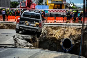 ระบุว่า รัศมีความลึกที่ต้องเฝ้าระวังประมาณ 100 เมตร เนื่องจากหลุมลึก 50 เมตร ส่วนสี่แยกในบริเวณนี้คาดว่าจะเปิดได้ ส่วนอาคารต่างๆ โดยรอบที่ไม่มีกำแพงกันดิน ยังถือว่าเป็นจุดอันตราย หรือจุดเปราะบาง เพราะเราเห็นเสาเข็มเลย
