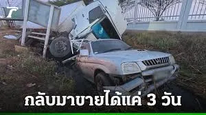 ทั้งนี้ ทำให้กระทะน้ำมันที่กำลังทอดเผือกกระเด็นไปคนละทิศละทาง ข้าวของเครื่องใช้กระจายเต็มพื้น ส่วนรถกระบะพังยับและยังถูกรถบรรทุกทับคาร่องน้ำ ในขณะที่ร่างของผู้ตายกระเด็นตกจากรถเสียชีวิตริมถนน