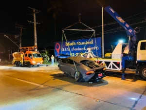 ลัมโบร์กินี ชนเสาไฟฟ้าที่นนทบุรี คนขับ-คนนั่ง เจ็บเล็กน้อย