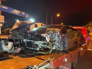 เมื่อเวลา 01.30 น. วันที่ 8 ธันวาคม 2568 เจ้าหน้าที่ตำรวจ สภ.บางศรีเมือง ได้รับแจ้งมีรถเก๋งซุปเปอร์คาร์ชนเสาไฟฟ้า เหตุเกิดใกล้สถานีรถไฟฟ้าบางรักน้อยท่าอิฐ ถนนรัตนาธิเบศร์ มุ่งหน้า บางใหญ่ ต.บางรักน้อย อ.เมืองนนทบุรี
