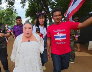 โดย กล่าวว่า “การกระทำแบบนี้เป็นสิ่งที่คนไทยยอมไม่ได้ ถ้าแน่จริงมาเจอกันเลยที่ถนนสีเพ็ญ ฉันพร้อมจะสู้เพื่อปกป้องศักดิ์ศรีของทหารไทยและแผ่นดินไทย” คำพูดดังกล่าวสร้างเสียงเฮดังสนั่นจากประชาชนที่มาร่วมให้กำลังใจเจ้าหน้าที่ในพื้นที่ หลายคนต่างโบกธงไตรรงค์ และส่งเสียงเชียร์สนับสนุนไม่ขาดสาย