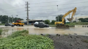 รักษาการผู้ว่าฯ อ่างทอง ลงพื้นที่ตรวจสอบเร่งแก้ปัญหาน้ำเจ้าพระยาทะลุพนังกั้นน้ำ เอ่อเข้าท่วมเขตพื้นที่เศรษฐกิจ “ป่าโมก” จ.อ่างทอง สั่งเร่งลำเลียงทราย กรอกบิ๊กแบ็กอุดรอยรั่ว เพื่อให้ถนนทางหลวงหมายเลข 33 กลับมาสู่สภาวะปกติ