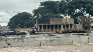เร่งวางบิ๊กแบ็กอุดรอยรั่ว “สะพานป่าโมก” ให้ถนนทางหลวงหมายเลข 33