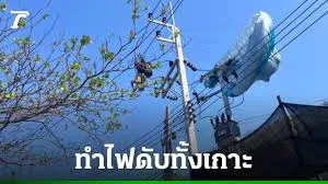 นักกีฬาร่มบิน ติดเสาไฟฟ้าแรงสูง ตัดไฟทั้งเกาะล้าน ช่วยเหลือนำส่ง รพ.